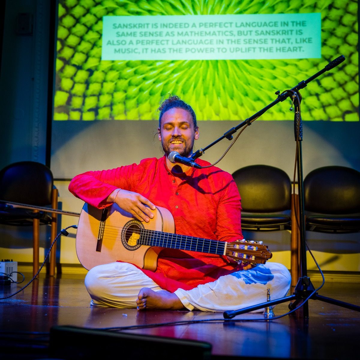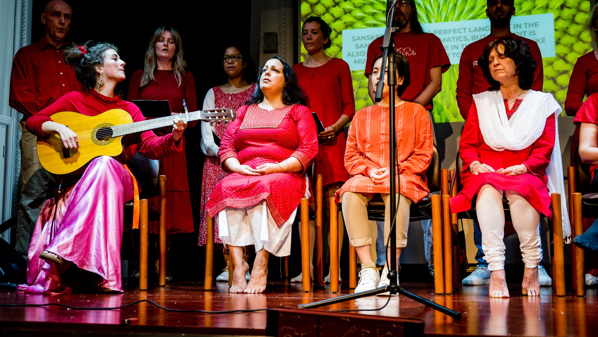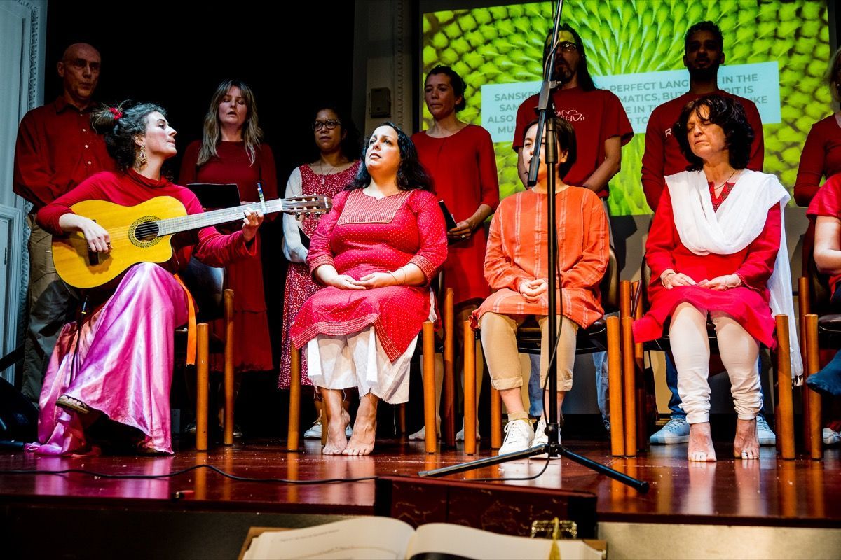 Today the choir brings Sanskrit into the contemporary world through performance and recording with the guidance of Gaiea Sanskrit who has studied the language since childhood.