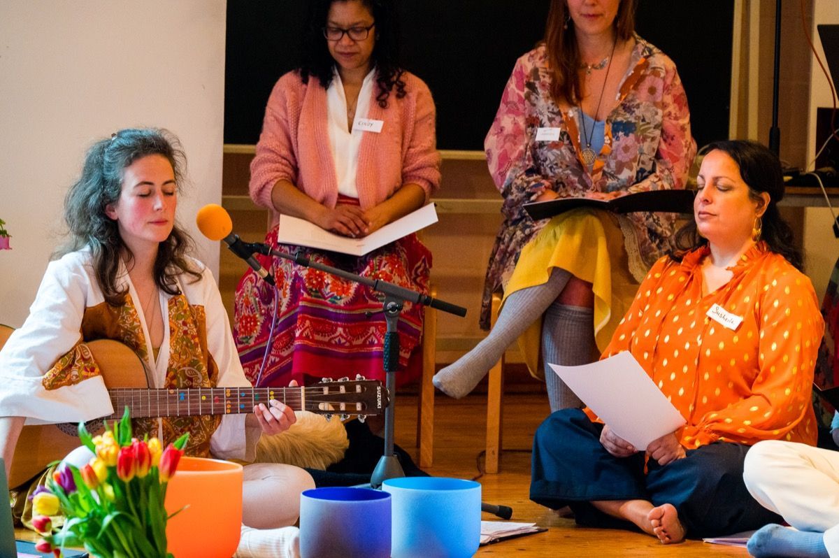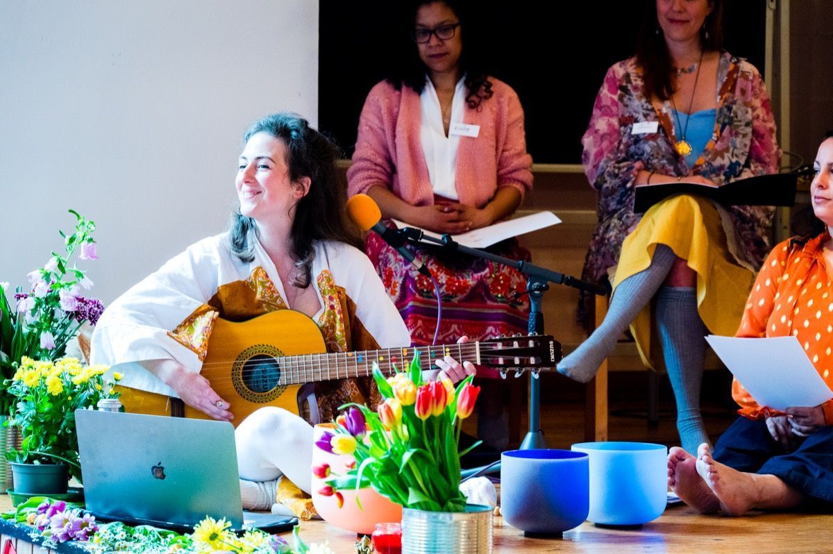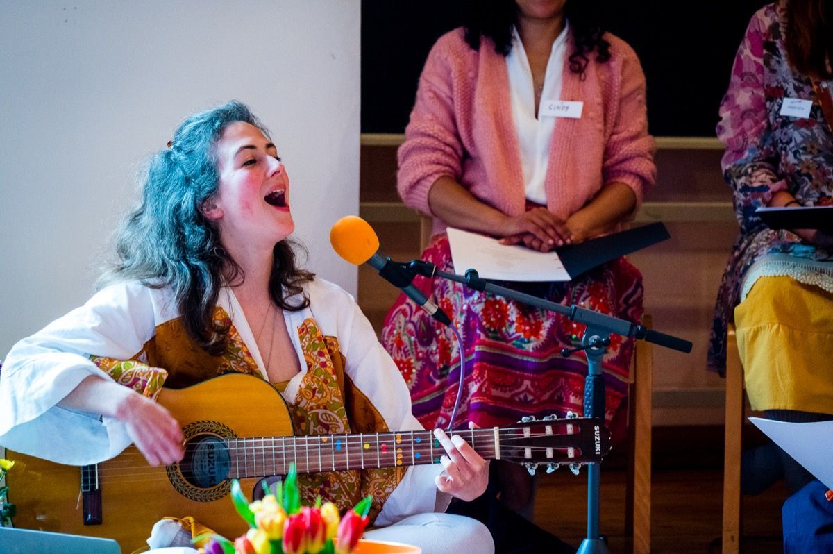 Gaiea and the Cosmic Choir started as just 'Cosmic Choir' in 2021, first as a community workshop format and running terms twice per year with performances at the end of each. The choir has been evolving all the while and now is focusing on bringing what has been learned to the public and to share even further.